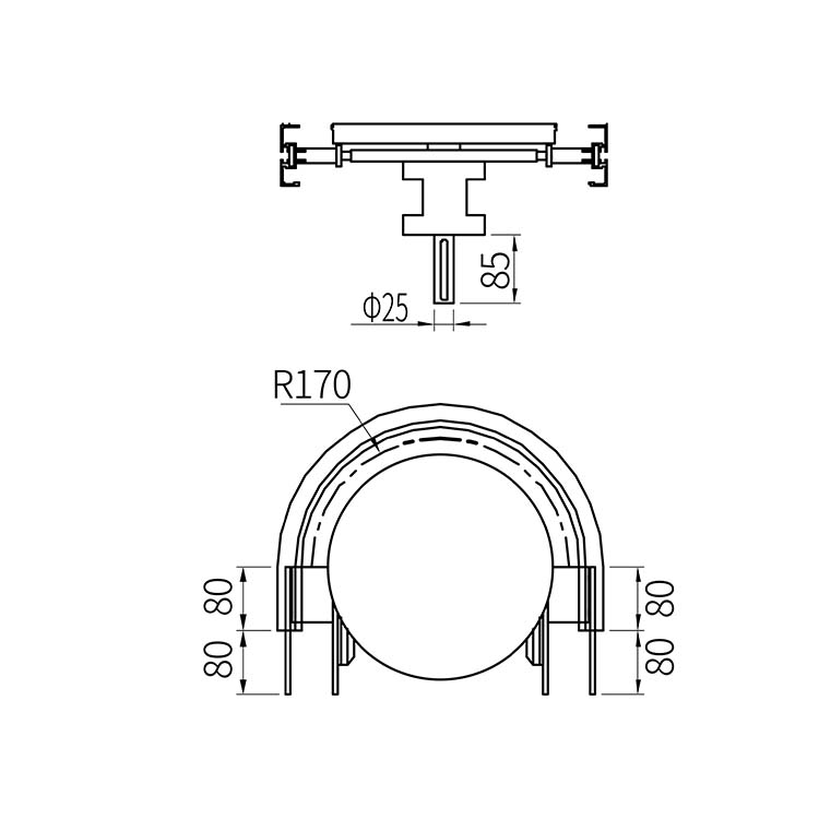 水平轮弯头在摩擦力最小的情况下水平改变传输装置的方向。 外侧型材配合塑料垫片卡扣,防止掉落。 外侧凹槽,用于连接条型材对接,布置紧固件。