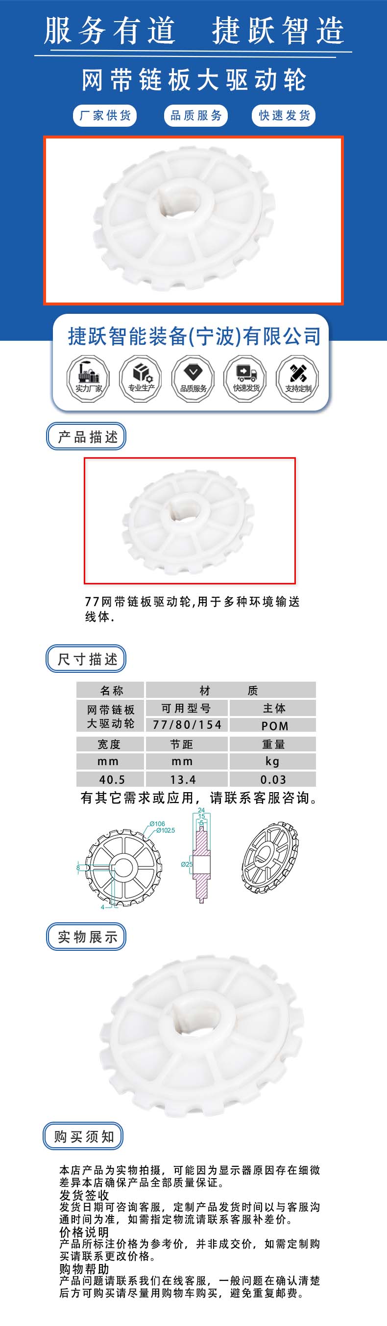 77网带链板驱动轮,用于多种环境输送线体.