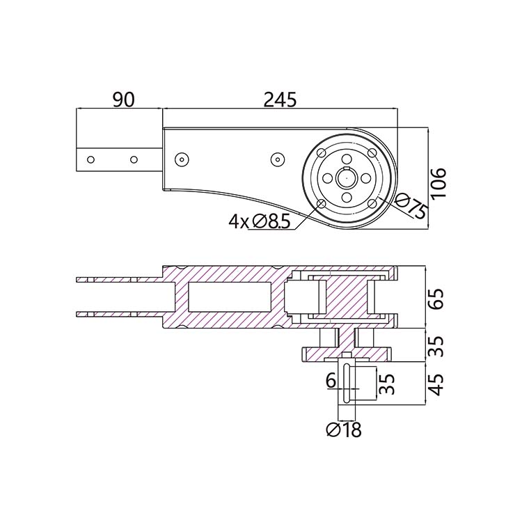 输送链驱动装置,用于输送链。 伸出的连接条链接输送梁,用于对接输送轨道, 轴用于添加法兰,放置电机,从而获得输入动力,驱动输送链运动,常与尾轮装置配套使用。