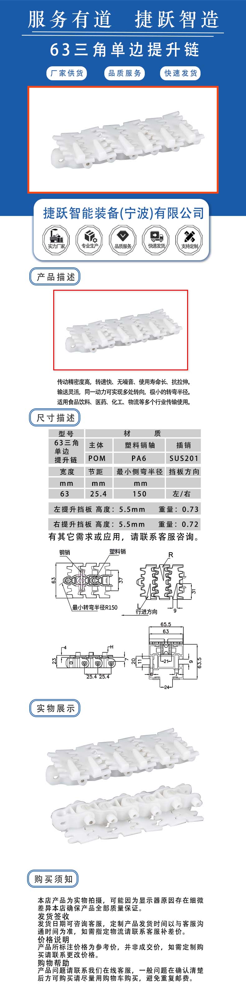 63三角单边提升链