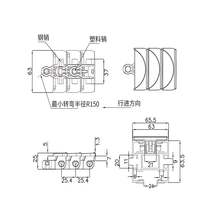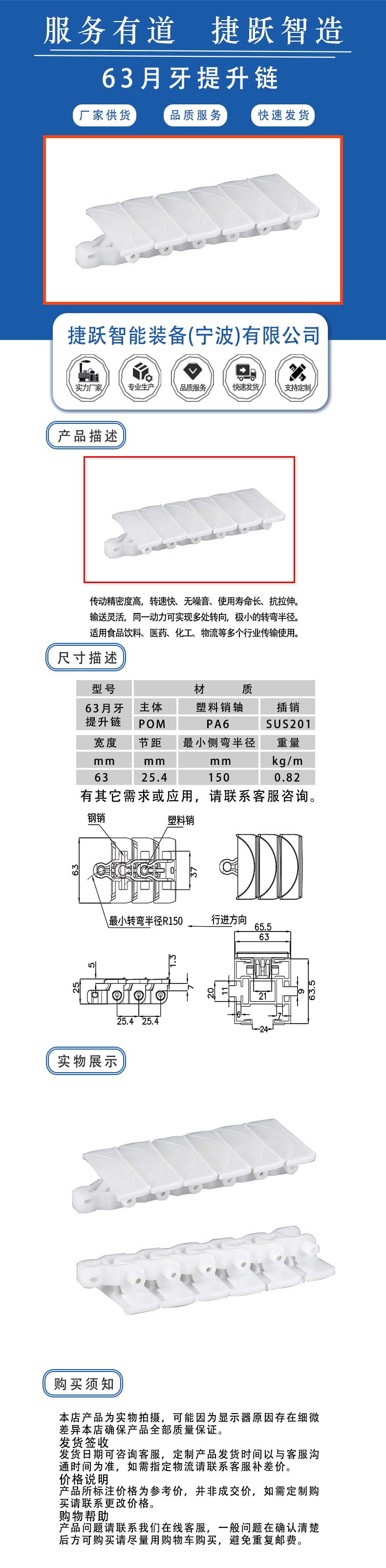 传动精密度高,转速快、无噪音、使用寿命长、抗拉伸。 输送灵活,同一动力可实现多处转向,极小的转弯半径。 适用食品饮料、医药、化工、物流等多个行业传输使用。