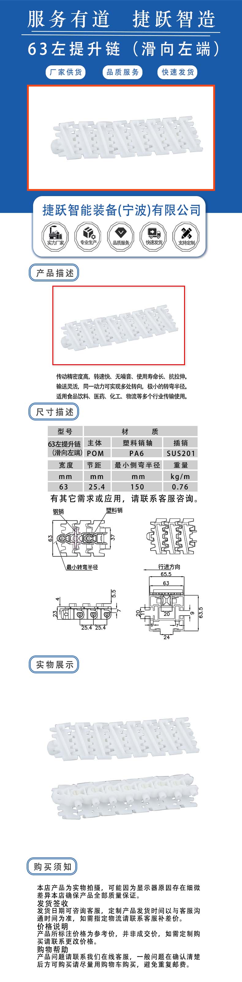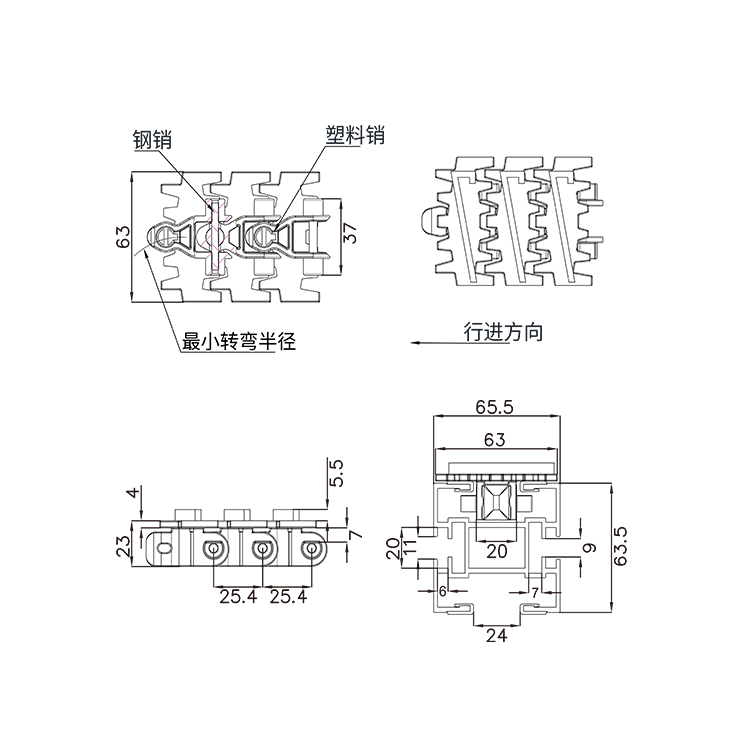 传动精密度高,转速快、无噪音、使用寿命长、抗拉伸。 输送灵活,同一动力可实现多处转向,极小的转弯半径。 适用食品饮料、医药、化工、物流等多个行业传输使用。
