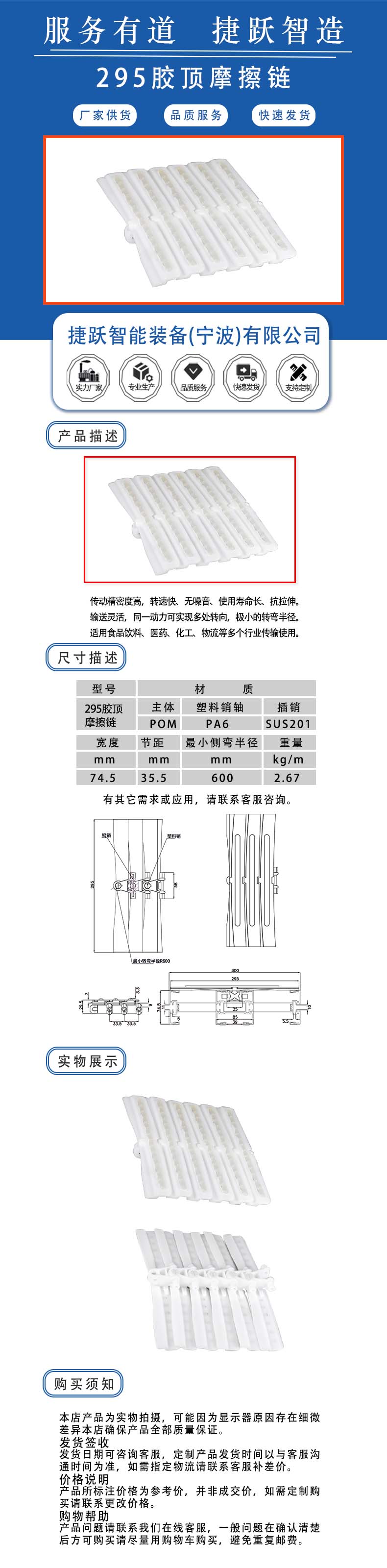 295胶顶摩擦链