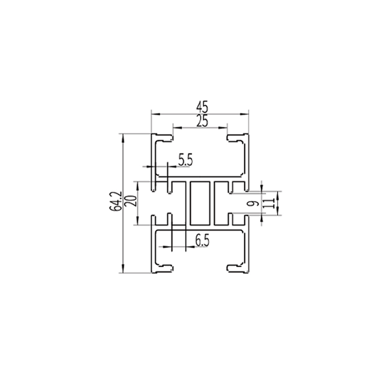 用于各款输送带的直线输送轨道。 配合垫片卡扣,防止脱落。 左右下凹槽,布置紧固件或连接条。