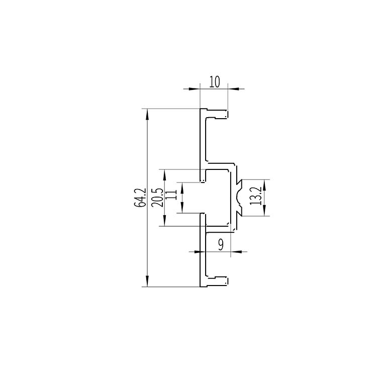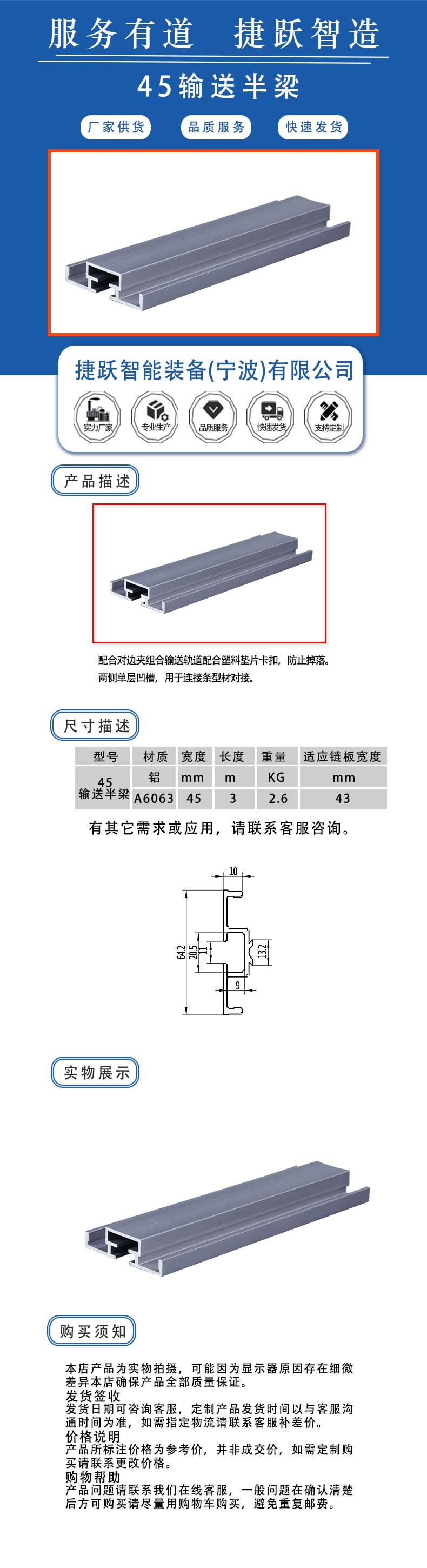 配合对边夹组合输送轨道,配合塑料垫片卡扣,防止掉落 两侧双层凹槽,内层用于连接条型材对接,外层用于布置紧固件。
