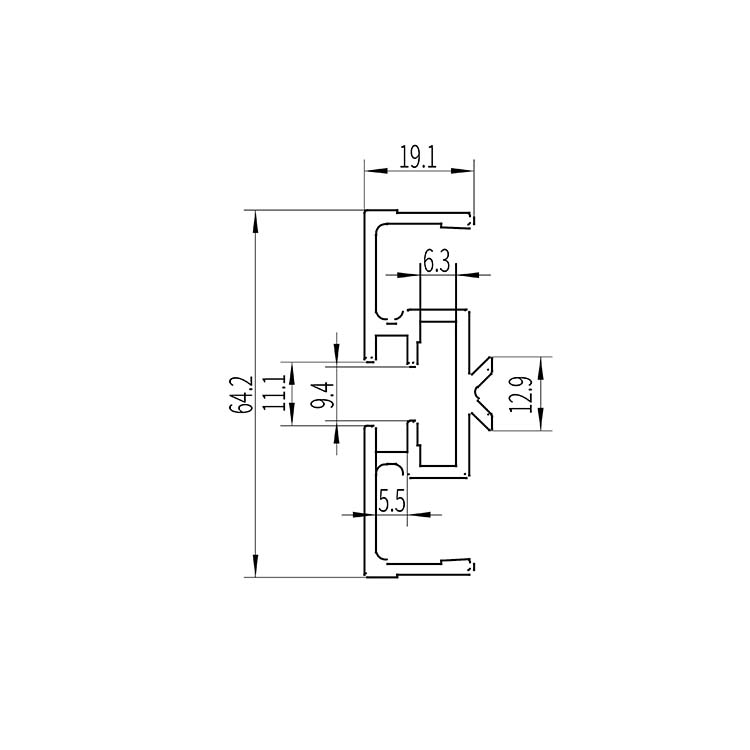 配合对边夹组合输送轨道,配合塑料垫片卡扣,防止掉落 两侧双层凹槽,内层用于连接条型材对接,外层用于布置紧固件。