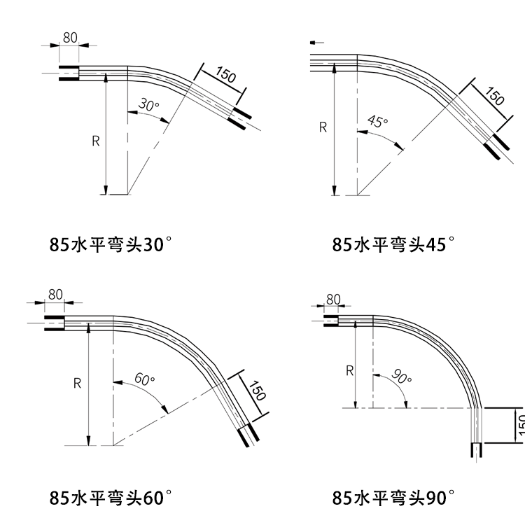 水平普通弯头非标定制需要角度弯度R半径请联系客服确认尺寸。