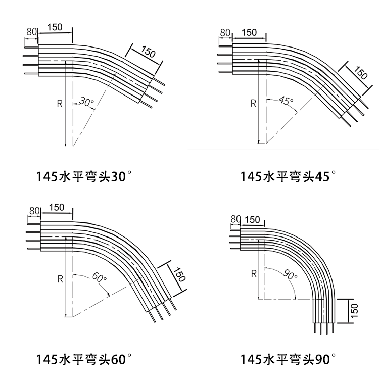 水平普通弯头非标定制需要角度弯度R半径请联系客服确认尺寸。