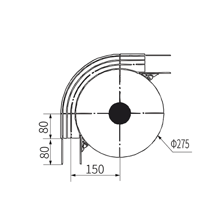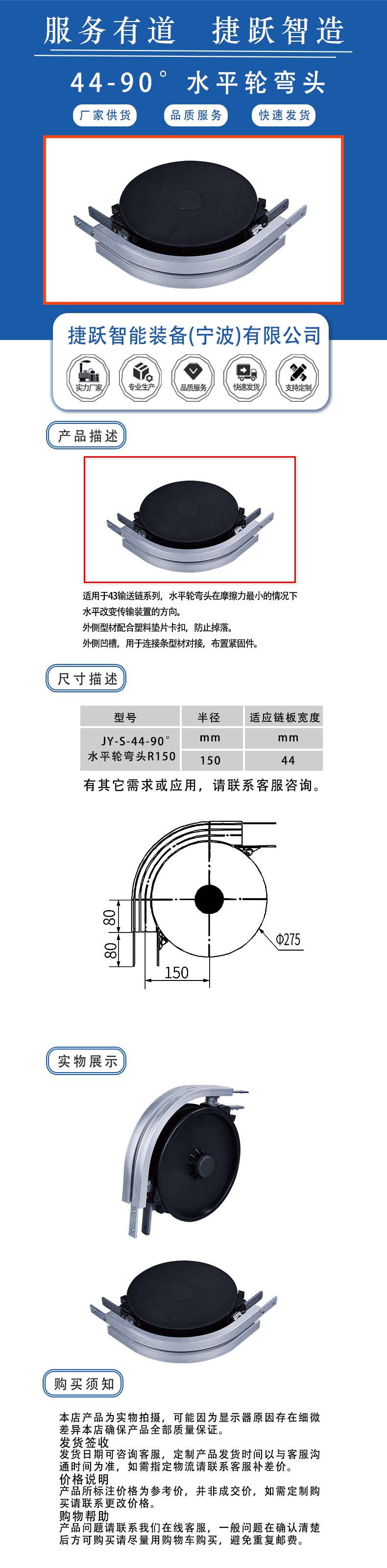 水平轮弯头在摩擦力最小的情况下水平改变传输装置的方向。 外侧型材配合塑料垫片卡扣,防止掉落。 外侧凹槽,用于连接条型材对接,布置紧固件。