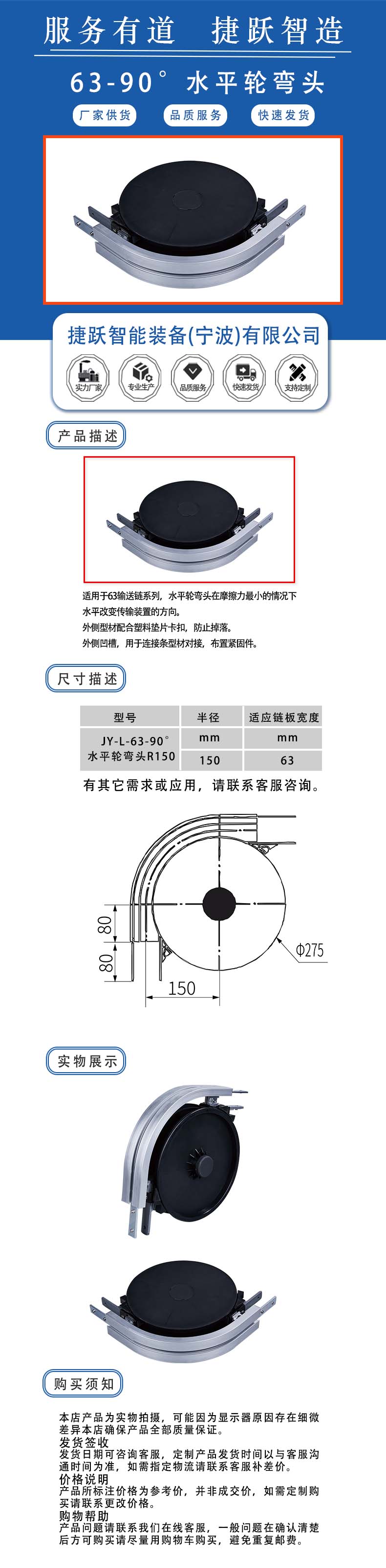水平轮弯头在摩擦力最小的情况下水平改变传输装置的方向。 外侧型材配合塑料垫片卡扣,防止掉落。 外侧凹槽,用于连接条型材对接,布置紧固件。