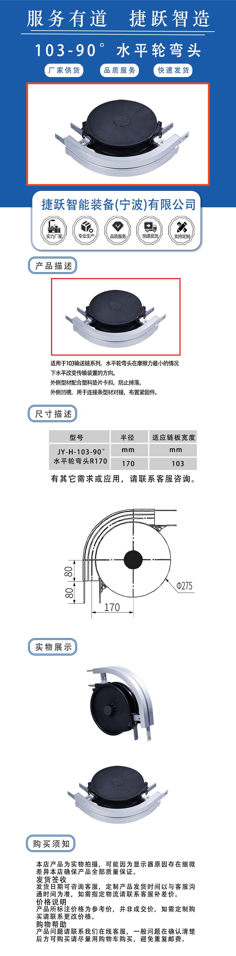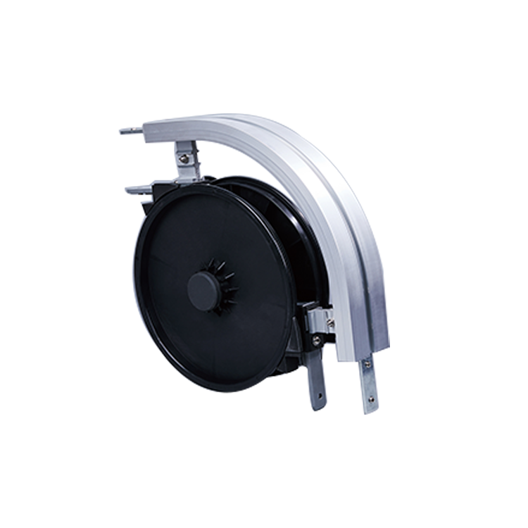 水平轮弯头在摩擦力最小的情况下水平改变传输装置的方向。 外侧型材配合塑料垫片卡扣,防止掉落。 外侧凹槽,用于连接条型材对接,布置紧固件。
